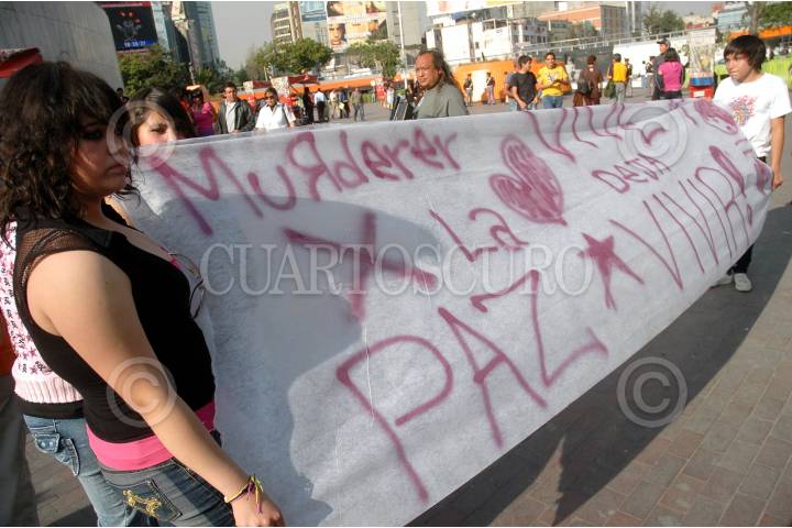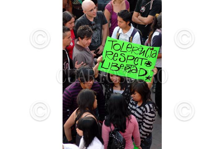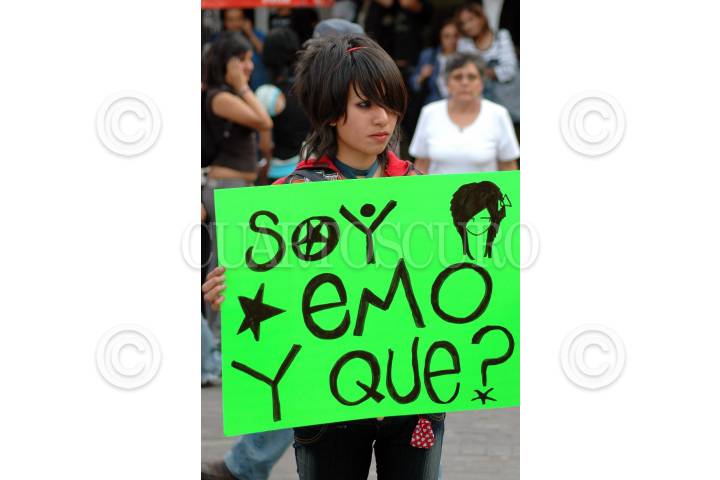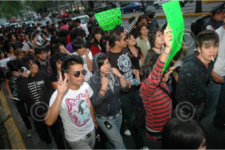 MÉXICO D.F., 19MARZO2008.- Un grupo de adolescentes de la tribu urbana "Emo" se manifestaron en la glorieta a Insurgentes para posteriormente marchar sobre Reforma para exigir respeto y que cesen las agresiones en su contra por parte de otras tribus urbanas. FOTO: RODOLFO ANGULO/CUARTOSCURO.COM
