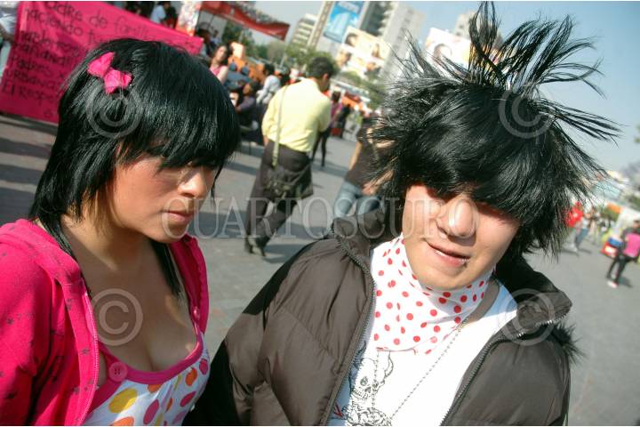 MÉXICO D.F., 19MARZO2008.- Los Emos, tribu urbana de adolescentes se caracteriza por cubrirse uno o los dos ojos con sus cabellos lacios y negros. FOTO: RODOLFO ANGULO/CUARTOSCURO.CO