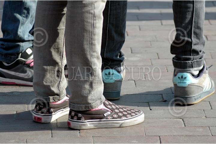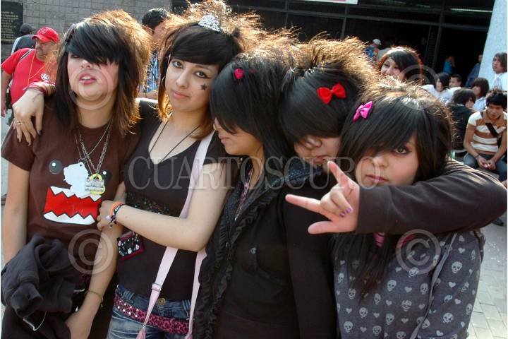 MÉXICO D.F., 19MARZO2008.- Los Emos, tribu urbana de adolescentes se caracteriza por cubrirse uno o los dos ojos con sus cabellos lacios, las mujeres usan prendedores de moños sobre sus cabezas, con sombras negras o de colores en sus ojos; ambos usan pantalones entubados dejando ver sus boxers con tenis sucios tipo vans o converse. FOTO: RODOLFO ANGULO/CUARTOSCURO.COM