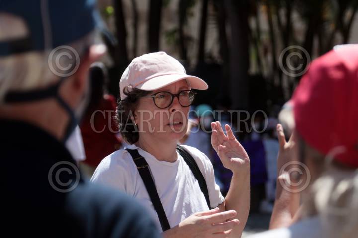 Carolina Ines Medina, madre de las niñas Maya y Galdor El Medina, durante la marcha que encabezo para denunciar que el padre de las menores las sustrajo de manera ilegal.