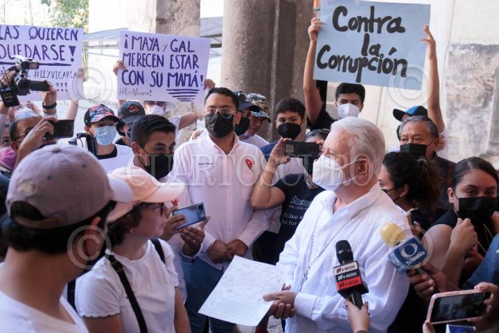 El productor de la pelicula Roma, Nicolás Celis, tio de las niñas Maya y Galdor El Medina, al final de la marcha para denunciar que el padre de las menores las sustrajo de manera ilegal.