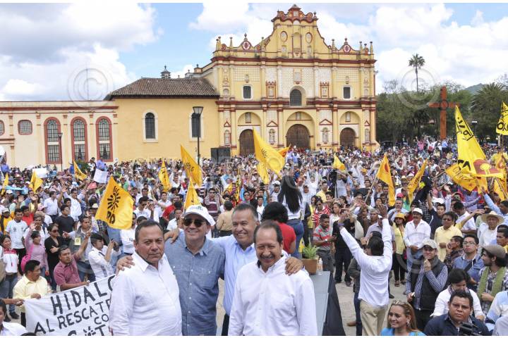 SAN CRISTÓBAL DE LAS CASAS, CHIAPAS, 03AGOSTO2013.- Jesús Zambrano Grijalva, presidente nacional del Partido de la Revolución Democrática PRD durante la presentación del Movimiento Nacional Patria Digna en San Cristóbal de Casas, Chiapas con la presencia de Carlos Sotelo Garcia Miembro del Consejo Político. En la imagen Carlos Sotelo, Jesús Zambano, lider del PRD, Pablo Salazar, ex-gobernador del estado y Leonel Godoy. FOTO: CUARTOSCURO.COM
