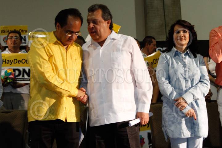 MÉXICO, D.F., 08SEPTIEMBRE2014.- Jesús Ortega, Carlos Navarrete y Héctor Bautista, presentaron en conferencia de prensa los resultados en donde la corriente Nueva Izquierda, encabezada por Jesús Zambrano, actual líder del PRD, mantendría el control del partido, junto con sus aliados de Alternativa Democrática Nacional, Nueva Izquierda y Foro Nuevo sol. Según el Sistema de Publicación de Actas del Instituto Nacional Electoral (INE), estas corrientes tendrían el 70% de los votos emitidos, lo cual les daría el derecho de nombrar al presidente y secretario general del partido, el próximo 5 de octubre. FOTO: ADOLFO VLADIMIR /CUARTOSCURO.COM
