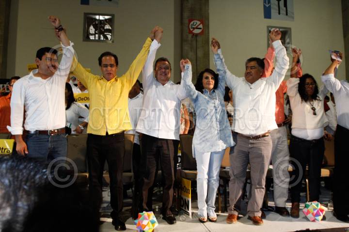 ACAPULCO, GUERRERO, 22MARZO2014.- El senador Sofío Ramírez, René Bejarano, líder de la corriente del PRD Izquierda Democrática Nacional, Ángel Aguirre Rivero, gobernador del estado y la senadora Dolores Padierna, durante el Foro México tiene Hambre y Sed de Justicia, en el Expo & Forum de Mundo Imperial de este puerto. FOTO: BERNANDINO HERNÁNDEZ /CUARTOSCURO.COM