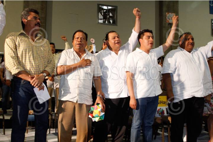 SAN CRISTÓBAL DE LAS CASAS, CHIAPAS, 03AGOSTO2013.- Jesús Zambrano Grijalva, presidente nacional del Partido de la Revolución Democrática PRD durante la presentación del Movimiento Nacional Patria Digna en San Cristóbal de Casas, Chiapas con la presencia de Carlos Sotelo Garcia Miembro del Consejo Político. En la imagen Jesús Zambrano, Pablo Salazar, ex-gobernador del estado y quien estuvo encarcelado por el delito de peculado, Carlos Sotelo y Leonel Godoy. FOTO: CUARTOSCURO.COM