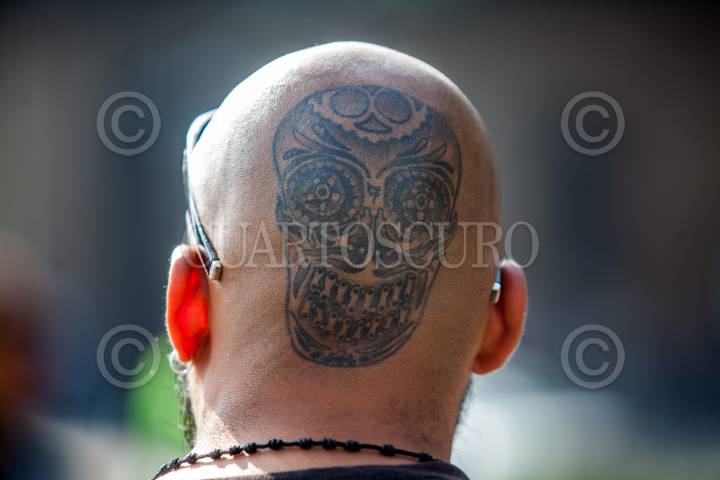 CIUDAD DE MÉXICO 07MAYO2016.- Personas que circulan en la zona del Metro Buenavista, observan con asombro la vestimenta punk de un joven que descansa sobre la banqueta. FOTO:TERCERO DÍAZ / CUARTOSCURO.COM