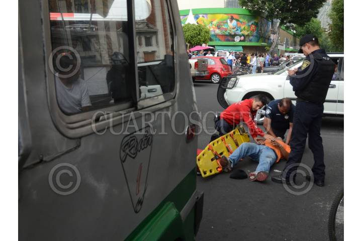 MÉXICO, D.F., 29ABRIL2015.- Un hombre que viajaba en su triciclo fue atropellado por un microbus de la ruta 1, el ciclista resultó lesionado y fue atendido por paramédicos, el incidente ocurrió en avenida Chapultepec y Cuauhtémoc. FOTO: ARMANDO MONROY /CUARTOSCURO.COM