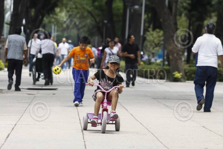 MÉXICO,D.F., 01MAYO2015.- Una niña juega con su triciclo sobre el camellón del Paseo de la Reforma. FOTO: RODOLFO ANGULO /CUARTOSCURO.COM