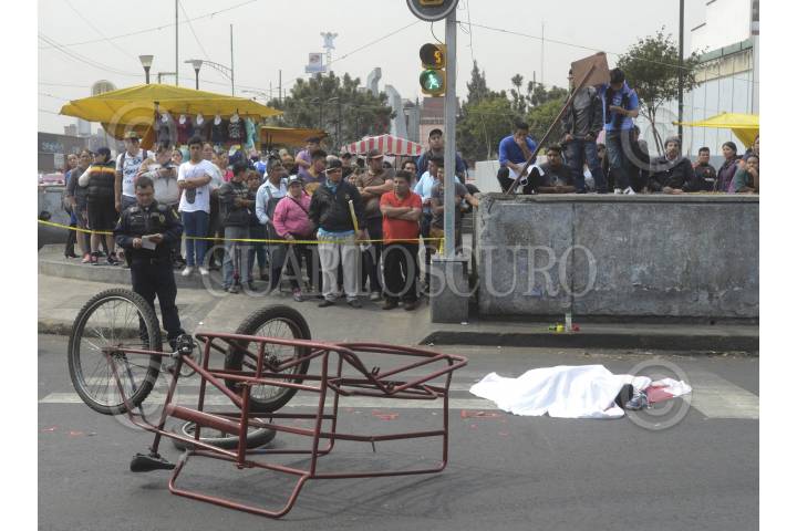CIUDAD DE MÉXICO, 16FEBRERO2016.- Un joven murió atropellado por dos camionetas y un camión, este último se dio a la fuga, la víctima circulaba con su triciclo sobre avenida Congreso de la Unión y Morelos en la colonia Sevilla. FOTO: ARMANDO MONROY /CUARTOSCURO.COM