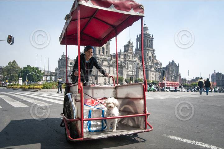 CIUDAD DE MÉXICO, 10MARZO2017.- Una mujer se pasea con su triciclo y su perro sobre el circuito del zócalo capitalino. FOTO: DIEGO SIMÓN SÁNCHEZ /CUARTOSCURO.COM