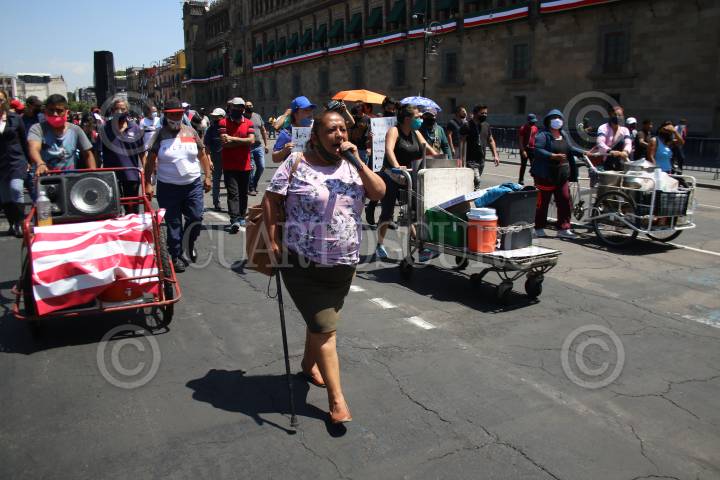 La líder de los ambulantes Diana Sánchez Barrios acompañó a comerciantes ambulantes de comida durante la manifestación en el Zócalo.