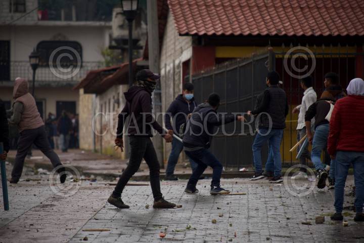 Habitantes de Oxchuc se enfrentaron con piedras, palos y balazos luego de que no se declarará un ganador a la Presidencia Municipal, elecciones que se llevaron bajo el Sistema Normativo Interno.