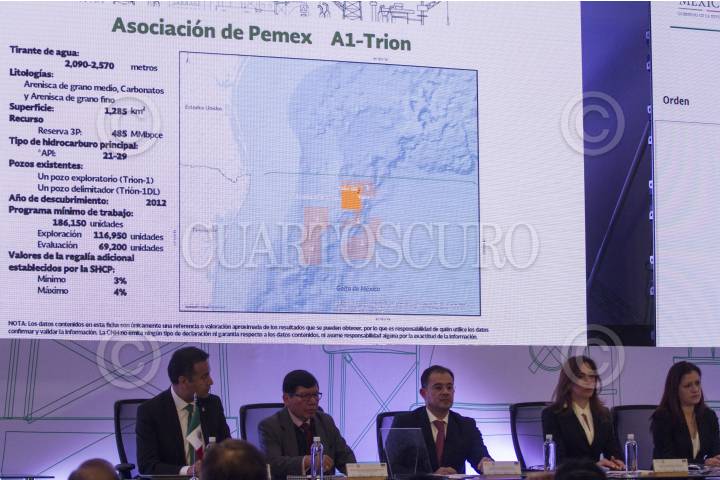 CIUDAD DE MÉXICO, 05DICIEMBRE2016.- BHP Billition Petróleo Operaciones de México se convirtió en la primera socia formal de Petróleos Mexicanos en la historia, al adjudicarse la licitación Trion, esta mañana en el Centro Banamex. FOTO: ISAAC ESQUIVEL /CUARTOSCURO.COM