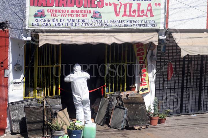 CUERNAVACA, MORELOS, 28MARZO2019.-Una mujer y dos hombres jóvenes fueron asesinados a balazos en el interior de un negocio de venta de radiadores al sur de la capital. Los hechos ocurrieron minutos antes de las diez de la mañana dentro del establecimiento ubicado a la orilla de la carretera que conduce a Temixco, en la colonia El Polvorín. FOTO: MARGARITO PÉREZ RETANA /CUARTOSCURO.COM