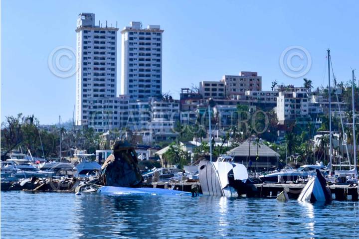 ACAPULCO, GUERRERO, 14NOVIEMBRE2023.- Continúan las maniobras de rescate de embarcaciones y búsqueda de cuerpos de tripulantes de embarcaciones que desaparecieron durante el huracán Otis, que azotó el puerto de Acapulco, fuentes de la marina han informado que tienen un reporte de 617 embarcaciónes afectadas de las cuáles 69 han sido ya recuperadas. FOTO: CARLOS ALBERTO CARBAJAL/CUARTOSCURO.COM