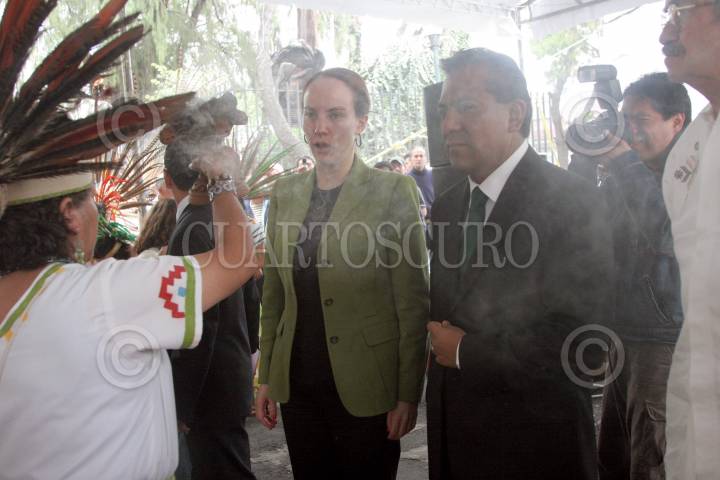 México D.F., a 30 de junio de 2008.- En la calzada México Tacuba, en el Ahuehuete donde Hernan Cortes fue vencido por Cuitlahuac, se realizo una ceremonia para conmemorar la "Noche Victoriosa", el evento lo encabezaron, la delegada de miguel Hidalgo Gabriela Cuevas y el de Iztapalapa Horacio Martínez. FOTO: VICTORIA VALTIERRA/CUARTOSCURO.COM