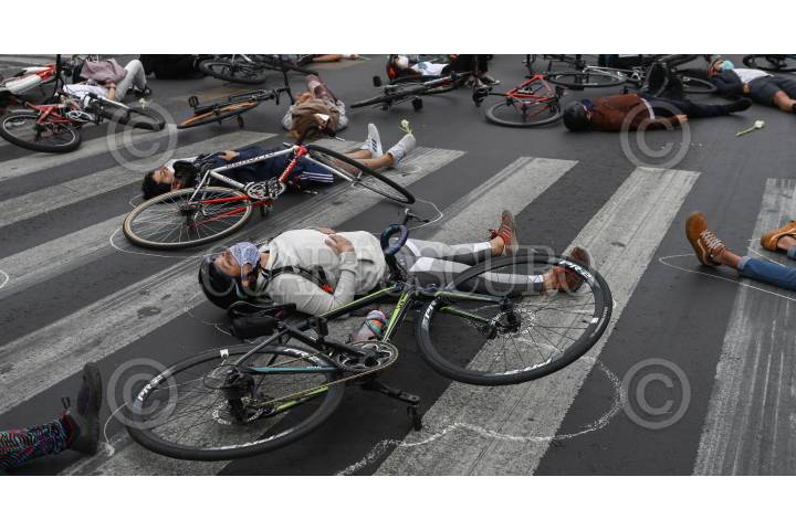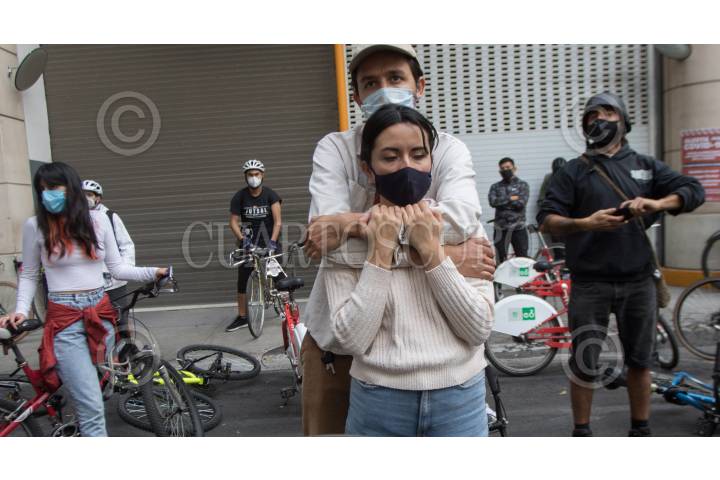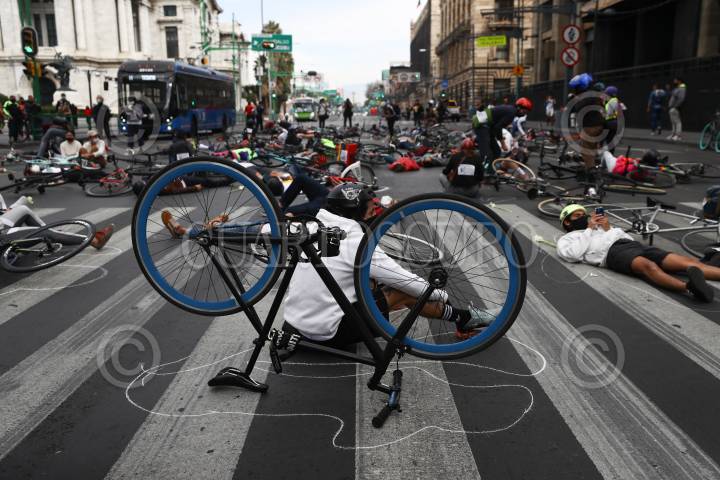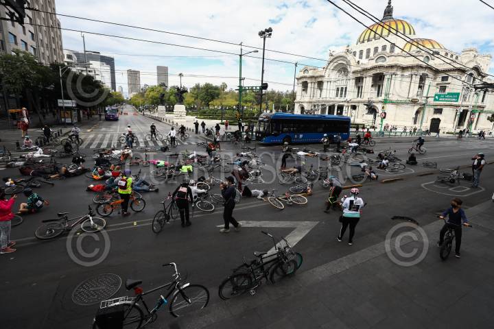 Un grupo de Ciclistas, se manifestaron en Bellas Artes y en la representación del Estado de Yucatán; por la muerte de un jóven llamado Jacinto.
