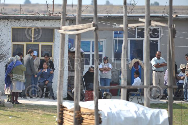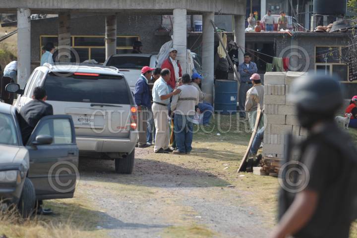 ALMOLOYA DE JUÁREZ, ESTADO DE MÉXICO, 11DICIEMBRE2009.- Una Familia fue ejecutada con disparos de arma de fuego esta mañana, dejando a seis menores amarrados con cintas en un cuarto aledaño a la vivienda ubicada en el poblado, Ejidos de San Lorenzo Cuautenco. Elementos de la ASE, resguardan el lugar de los hechos. FOTO: LUIS CARBAYO/CUARTOSCURO.COM