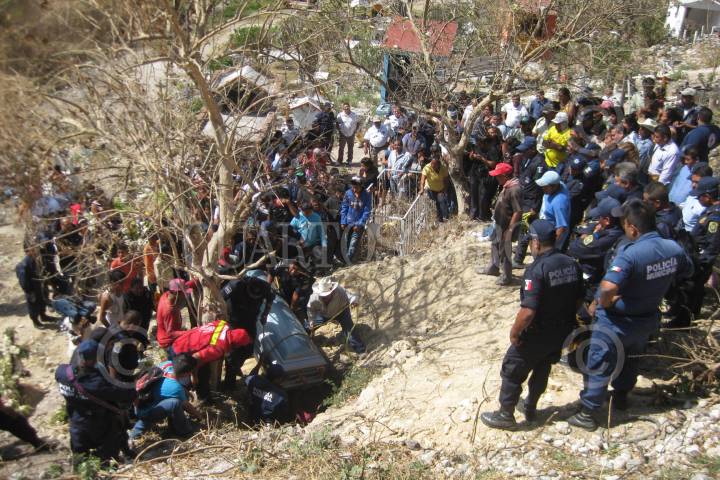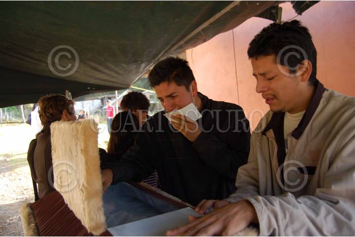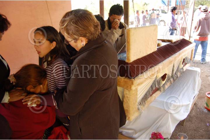 AGANGUEO, MICHOACAN, 08FEBRERO2010.- Familiares de personas que fueron sepultadas por las fuertes lluvias, inundaciones y piedras que cayeron del Cerro de Guadalupe, despiden los cuerpos que lograron ser rescatados debajo de los escombros y son velados en una capilla improvisada. FOTO: LEOVIGILDO GONZÁLEZ/CUARTOSCURO.COM