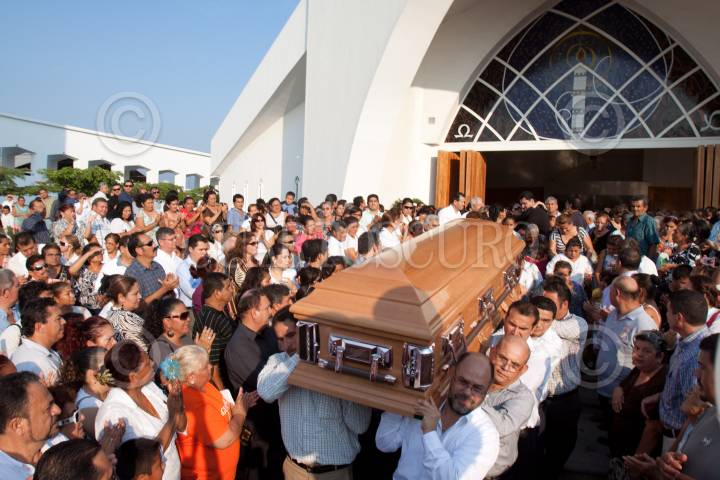 TECOMAN, COLIMA, 22NOVIEMBRE2010.- El féretro de Silverio Cavazos Ceballos (1968-2010) sale del Templo de Santo Santiago Apóstol ubicado en este municipio después de realizarle una misa. a quien fuera gobernador del estado. Silverio Cavazos fue asesinado el día de ayer por tres disparos de arma de fuego afuera de su casa. FOTO: MISAEL VALTIERRA/CUARTOSCURO.COM
