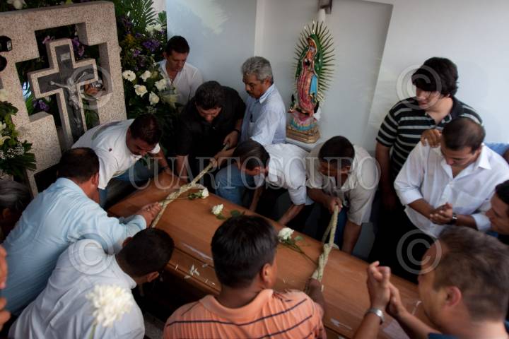 TECOMAN, COLIMA, 22NOVIEMBRE2010.- El féretro de Silverio Cavazos Ceballos (1968-2010) es colocado en una cripta del Panteón Dolores ubicado en este municipio ante la presencia de familiares y amigos que asistieron a la sepultura de quien fuera gobernador del estado. Silverio Cavazos fue asesinado el día de ayer por tres disparos de arma de fuego afuera de su casa. FOTO: MISAEL VALTIERRA/CUARTOSCURO.COM