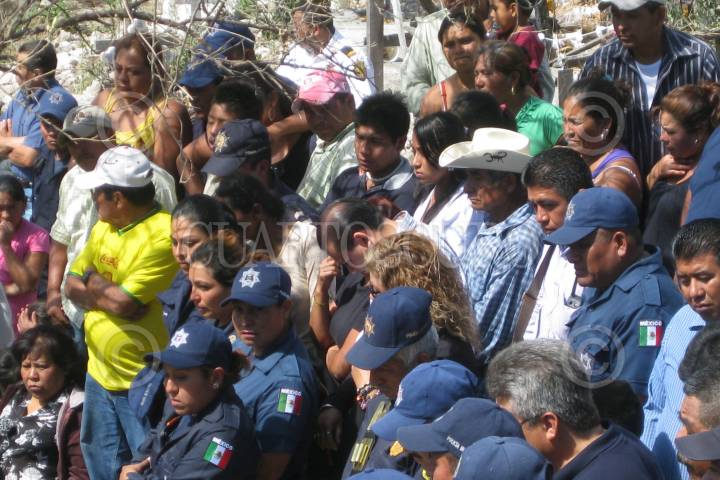 CHILPANCINGO, GUERRERO, 03FEBRERO2011.- Homenaje póstumo que le fue rendido en el cuartel de la Secretaria de Seguridad Publica Municipal (SSPM) al comandante de dicha corporación Jose Guadalupe de la Cruz Ruano luego de que fuera asesinado al ser emboscado por un grupo de sujetos fuertemente armados en la comunidad de Palo Blanco municipio de Chilpancingo cuando regresaba después de participar en un operativo donde fue detenido el comisario de la comunidad de El Tejocote con posesión de varios kilos de goma de opio. Cabe mencionar que después del homenaje fue trasladado al panteón nuevo donde fue sepultado, acompañándolo hasta su ultima morada familiares, amigos y compañeros de trabajo. FOTO: OSCAR ALVARADO/CUARTOSCURO.COM