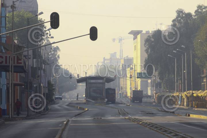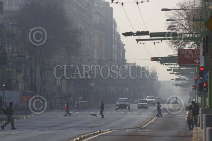 MÉXICO, D.F., 01ENERO2013.- Con una mala calidad del aire se despertaron los defeños este primer día del año, se implementó la precontingencia ambiental al norte de la capital donde las condiciones son "muy malas", aunque en toda la ciudad se apreció una intensa bruma. FOTO: MOISÉS PABLO /CUARTOSCURO.COM