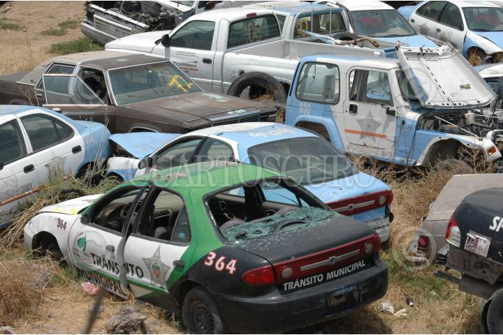 ECATEPEC, EDO. DE MÉXICO, 20ABRIL2009.- 398 vehículos del ayuntamiento fueron dados de baja por el Cabildo para desincorporar y vender como chatarra por kilo, informo José Antonio García Pérez, Coordinador de Patrimonio Municipal. Se venderán a la empresa Denchburg Recycling México, quien es la encargada de la compactación y trituración de los vehículos albergados en el predio municipal de Santa María Chiconautla. El Tesorero municipal, Edgar Antonio Martínez Zendejas, dio a conocer que se obtendrá $1.30 pesos por kilo de metal. Dado que el total de las unidades suman 278.6 toneladas, el monto de lo obtenido se ingresará a las arcas municipales y se utilizará para el apoyo de varios programas del gobierno local. FOTO: MARIO NULO/CUARTOSCURO.COM