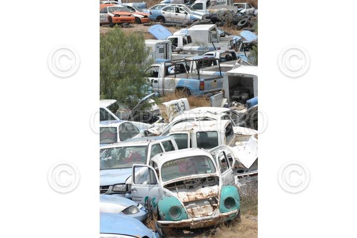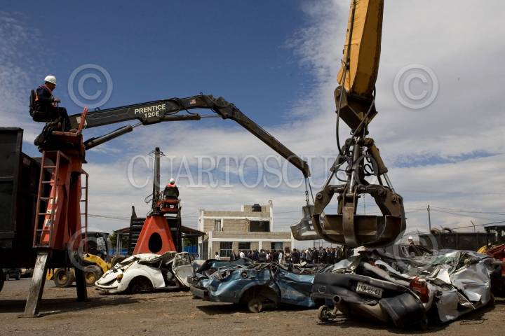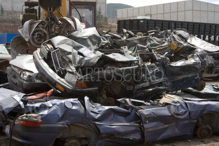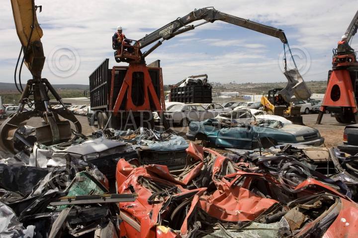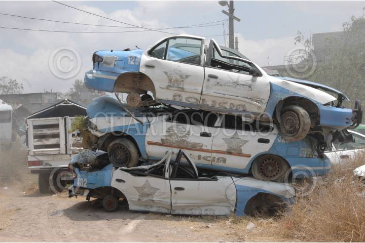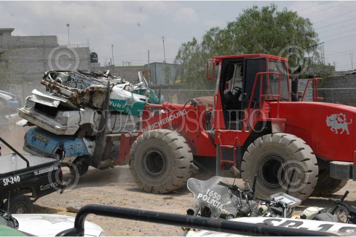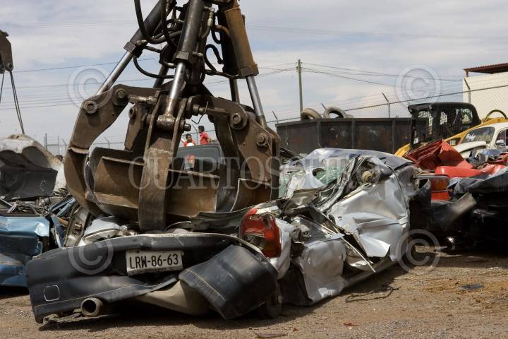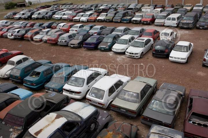 QUERÉTARO, QUERÉTARO, 19MARZO2010.- La compactación es el destino de los automóviles que han sido incautados y no fueron reclamados en la PGJ (Procuraduría General de Justicia) estatal. Los dueños tienen que acreditar mediante documentos la pertenencia del auto y tienen hasta diez años para hacer el reclamo. FOTO: DEMIAN CHÁVEZ/CUARTOSCURO.COM