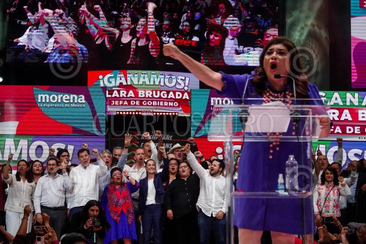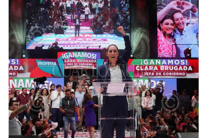 CIUDAD DE MÉXICO, 03JUNIO2024.- Claudia Sheinbaum, virtual ganadora de las elecciones presidenciales, acudió al Zócalo capitalino para celebrar el triunfo con simpatizantes de Movimiento de Regeneración Nacional (MORENA). Según cifras del PREP del Instituto Nacional Electoral, Sheinbaum Pardo obtuvo el 57? los votos. FOTO: GALO CAÑAS/CUARTOSCURO.COM