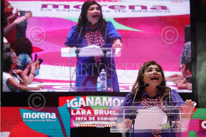 XALAPA, VERACRUZ, 02JUNIO2024.- La candidata a la gubernatura Rocío Nahle celebró su triunfo preliminar ante cientos de simpatizantes en la Plaza Lerdo. FOTO: YERANIA ROLÒN/CUARTOSCURO.COM