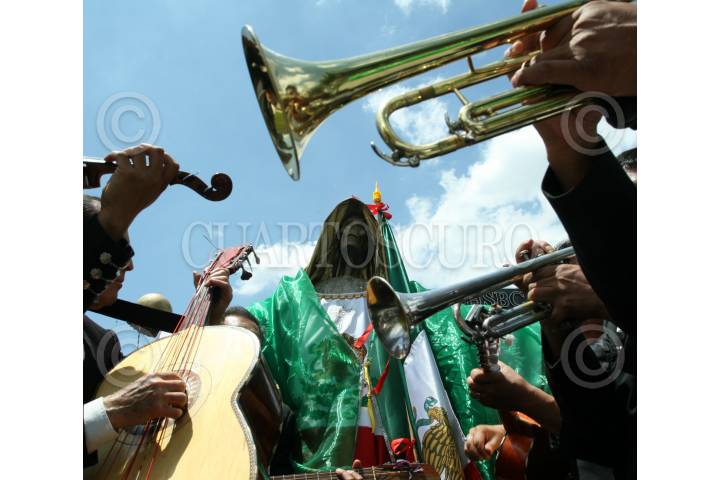 MÉXICO, D.F. 15SEPTIEMBRE2007.- Mariachis acompañan una peregrinación de seguidores de la Santa Muerte que partió del Ángel de la Independencia hacia el Zócalo. FOTO: PAOLA HIDALGO/CUARTOSCURO.COM