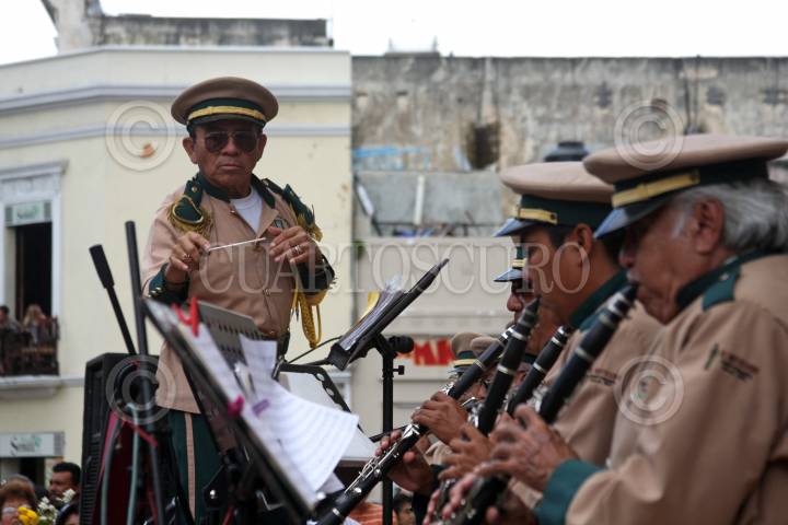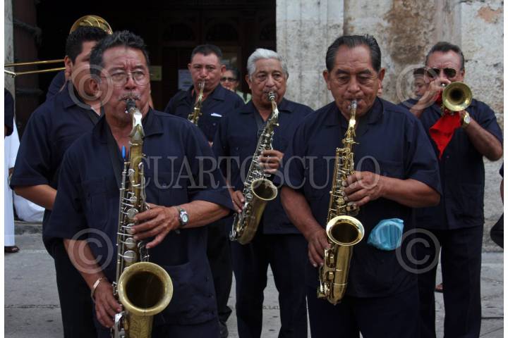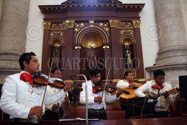 MÉRIDA, YUCATÁN, 22NOVIEMBRE2010.- Con una peregrinación y actuación de la Banda de Música del Estado; los músicos yucatecos festejaron como cada año en la Catedral San Idelfonso, a su patrona Santa Cecilia, ante la mirada de cientos de personas. FOTO: FRANCISCO BALDERAS/CUARTOSCURO.COM