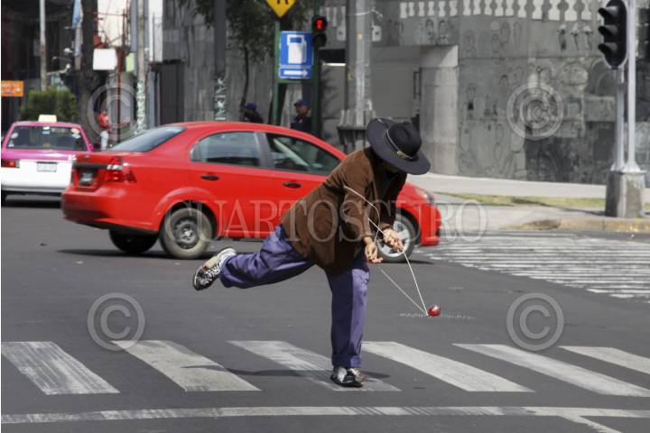 CIUDAD DE MÉXICO, 30OCTUBRE2016.- Un hombre realiza trucos con un trompo en el cruce de Juan Escutia y Circuito Interior. FOTO: GALO CAÑAS /CUARTOSCURO.COM