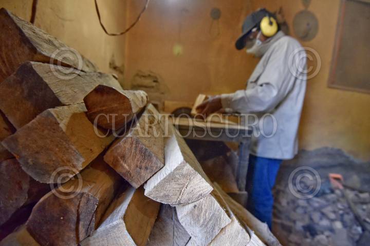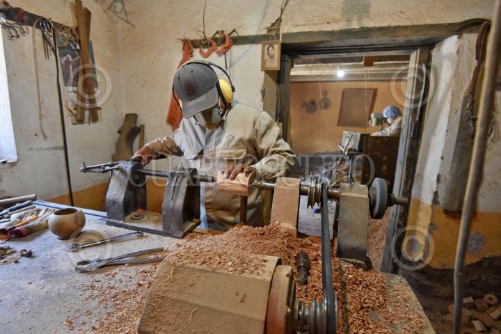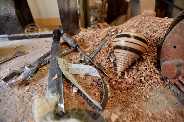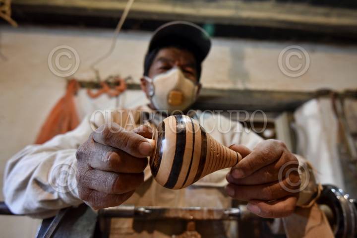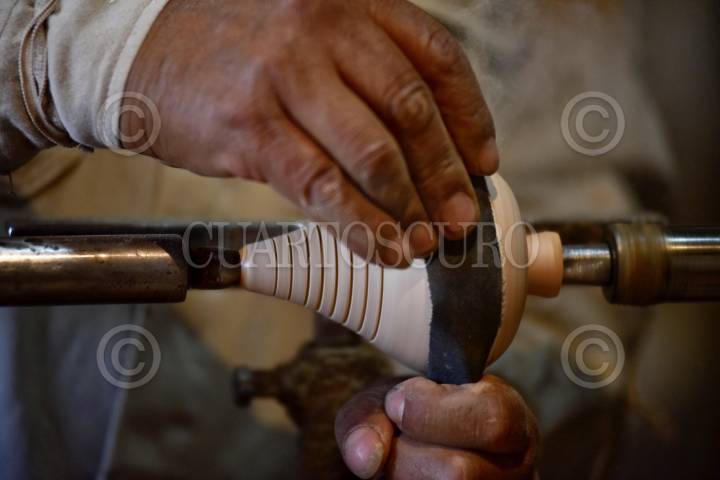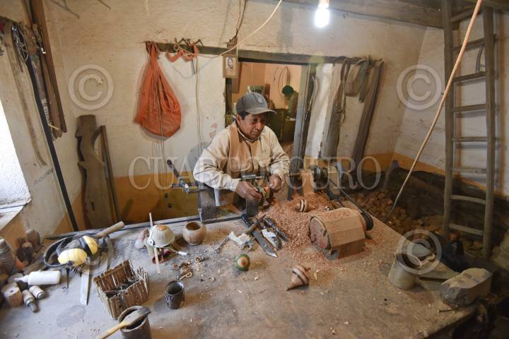 SAN ANTONIO LA ISLA, ESTADO DE MÉXICO, 27ABRIL2019.- Este municipio se caracteriza por el trabajo de los artesanos en la elaboración de juguete tradicional de madera como los trompos, yoyós, carritos de madera, pirinolas, entre otros; Fausto Miguel Torres lleva más de 30 años dedicándose a dar forma a pedazos de madera convirtiéndolos en estos juguetes que llegarán a manos de muchos niños, aunque la tradición se esté perdiendo por la poca venta de los mismos, y elaboran a la par saleros que es más fácil su venta. FOTO: CRISANTA ESPINOSA AGUILAR /CUARTOSCURO.COM