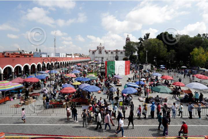 SAN PEDRO CHOLULA, PUEBLA. 08SEPTIEMBRE2023.- Más de 400 productores de Puebla y estado aledaños participaron del tradicional trueque milenario que se realiza cada 8 de septiembre en la plaza de la Concordia de San Pedro Cholula. FOTO: MIREYA NOVO/CUARTOSCURO.COM