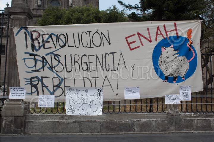 Mantas colocadas por los miembros de la ENAH para exigir un presupuesto anual garantizado