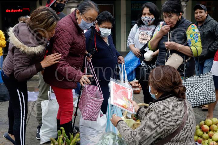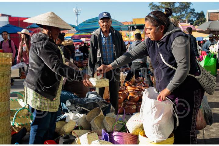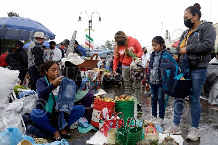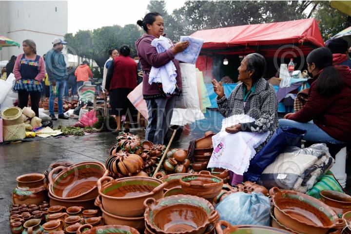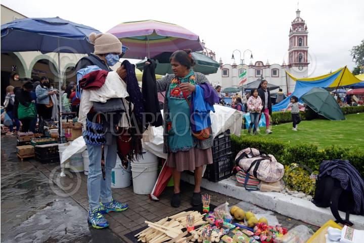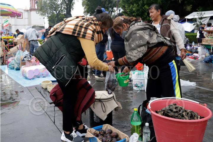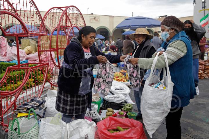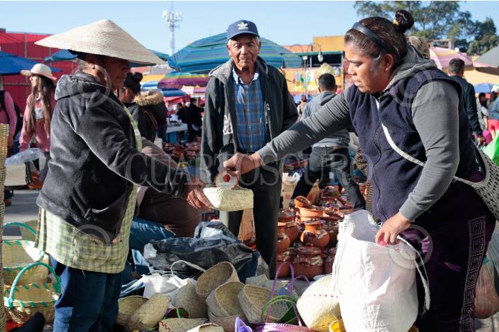 Comerciantes se dieron cita en el milenario tianguis del trueque en San Pedro Cholula.