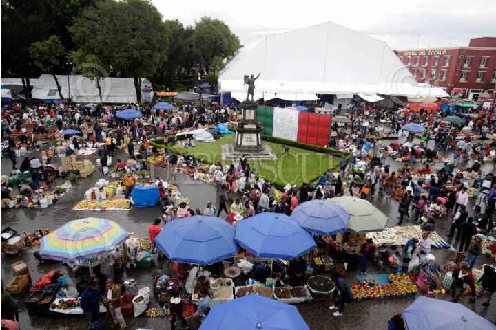 SAN PEDRO CHOLULA, PUEBLA, 08SEPTIEMBRE2023.- Más de 400 productores de Puebla y estado aledaños participaron del tradicional trueque milenario que se realiza cada 8 de septiembre en la plaza de la Concordia de San Pedro Cholula. FOTO: MIREYA NOVO/CUARTOSCURO.COM