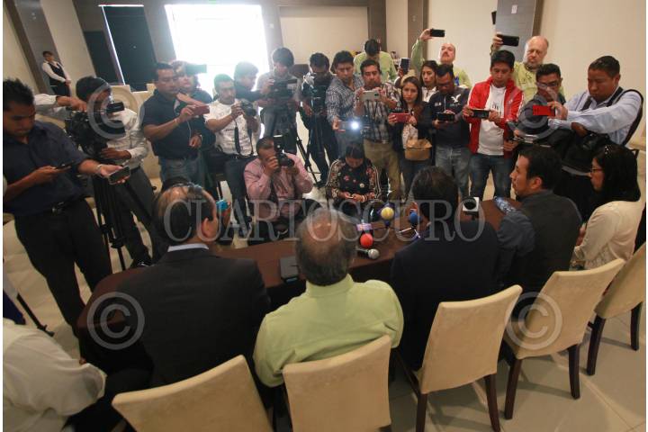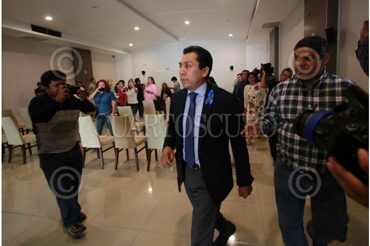 OAXACA, OAXACA, 13ABRIL2018.- El traumatólogo con especialidad en Ortopedia Pediátrica, Luis Alberto Pérez Méndez quien fuera acusado de homicidio doloso con agravante de responsabilidad médica, ofreció una conferencia de prensa tras haber sido puesto en libertad la noche de este jueves por órdenes de los magistrados de la Sala Penal del Tribunal Superior de Justicia del estado (TSJE) quienes ordenaron la reposición del proceso. Acompañado de abogados y amigos, el doctor afirmó que él continuará con la práctica pues no tiene ningún impedimento para ello, además reiteró que nunca hubo dolo en su actuar. Finalmente agradeció las muestras de apoyo y puntualizó que al final del proceso que seguirá la verdad saldrá a la luz. FOTO: ARTURO PÉREZ ALFONSO/ CUARTOSCURO.COM