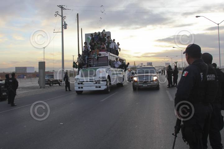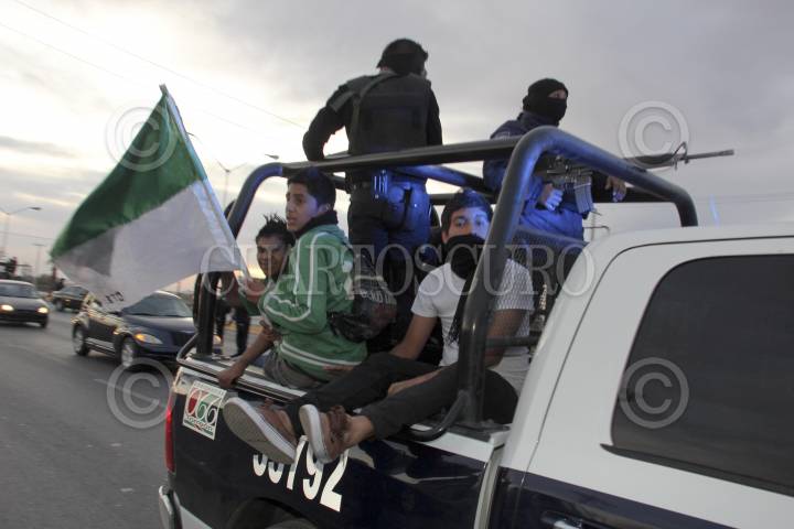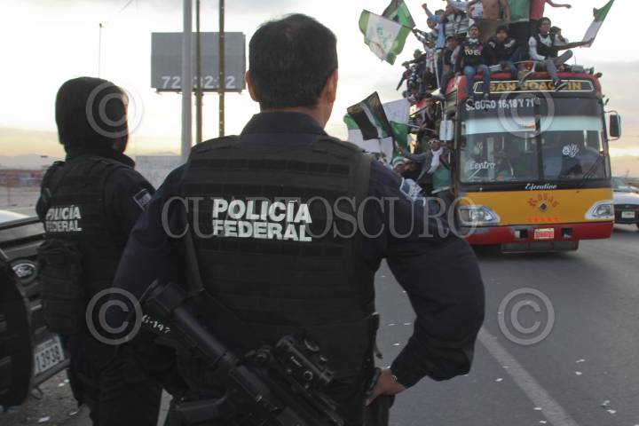 TORREÓN, COAHUILA, 08DICIEMBRE2011.- Policías, estatales, federales montaron un operativo especial de vigilancia durante el encuentro de fútbol entre el Santos Laguna y los Tigres, en el Territorio Santos Modelo (TSM). La vigilancia abarcará desde el estadio hasta el perímetro de la autopista Torreón-San Pedro y la antigua carretera a San Pedro. FOTO: SAÚL LÓPEZ/CUARTOSCURO.COM