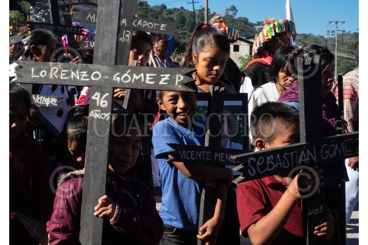 Familiares, amigos y organizaciones sociales se dieron cita para conmemorar los 25 años de la masacre de Acteal, Chiapas en las inmediaciones del colectivo Las Abejas