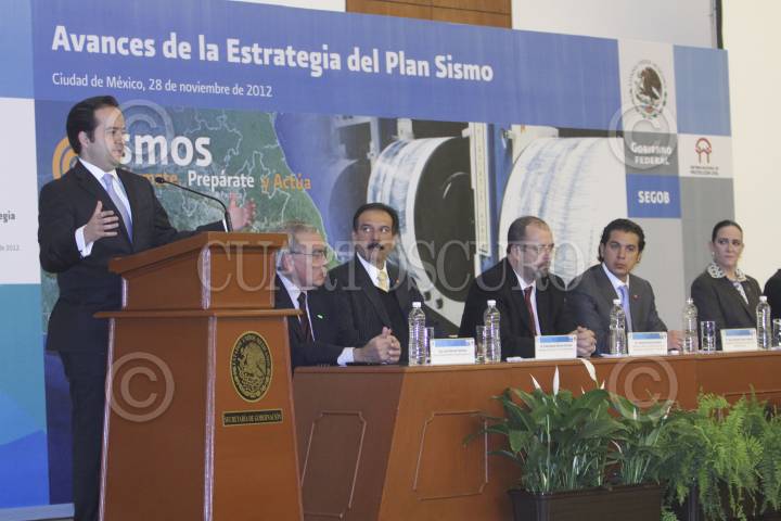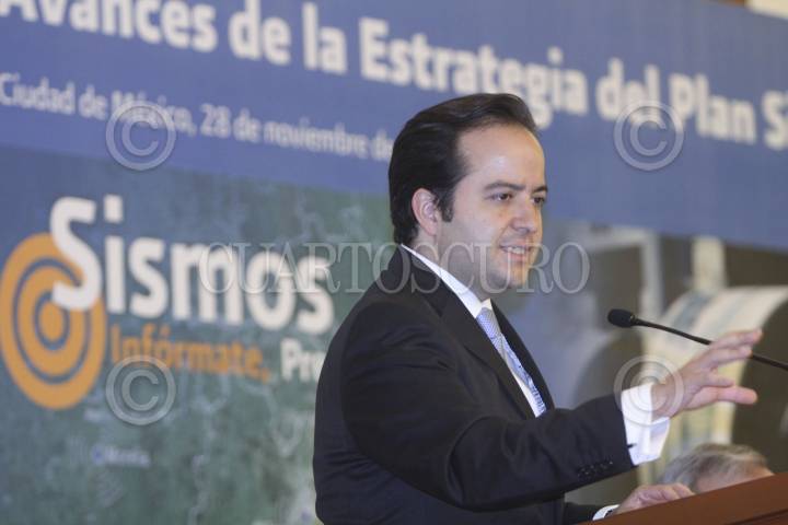 MÉXICO, D.F., 28NOVIEMBRE2012.- Alejandro Poiré Romero, Secretario de Gobernación, anunció el Plan Sismo, que destaca la puesta en marcha de la alerta de tsunamis y la nueva app para comunicarse en caso de emergencias. FOTO: SAÚL LÓPEZ /CUARTOSCURO.COM