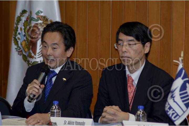 CIUDAD DE MÉXICO, 06SEPTIEMBRE2016.- Víctor Cruz Atienza, jefe de departamento de Sismología del Instituto de Geofísica de la Universidad Nacional Autónoma de México (UNAM); Kazuyoshi Shinoyama, director general en México de la Agencia de Cooperación Internacional de Japón (JICA); Akira Yamada, embajador de Japón en México; Taido Tanose, viceministro parlamentario de Educación, Cultura, Deportes, Ciencia y Tecnología de (MEXT-Japón); Leonardo Lomelí Vanegas, secretario general de la UNAM; Gina Casar, directora ejecutiva de la Agencia Mexicana de cooperación Internacional para el Desarrollo (AMEXCID), y Arturo Iglesias Mendoza, director del Instituto de Geofísica de la UNAM, presentaron el proyecto “Evaluación del Peligro Asociado a Grandes Terremotos y Tsunamis en la Costa del Pacífico Mexicano para la Mitigación de Desastres”, iniciativa que pretende reducir y prevenir los daños ocasionados por dichos desastres naturales. En la imagen Kazuyoshi Shinoyama y Akira Yamada. FOTO: GALO CAÑAS /CUARTOSCURO.COM