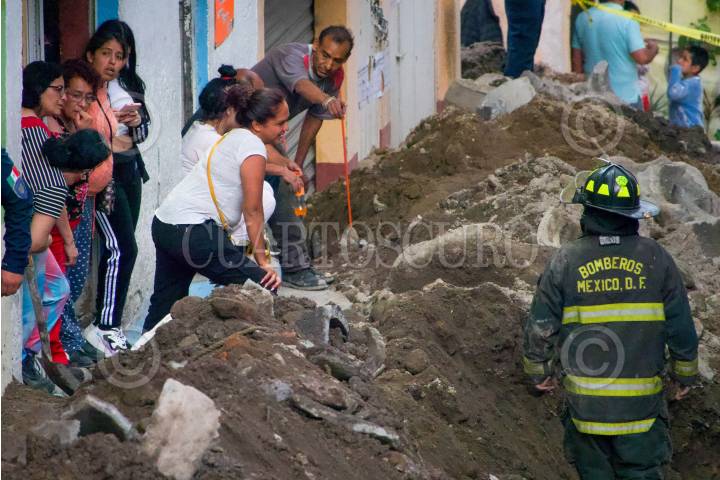 Un trabajador muerto y otro herido fue el alado de un deslizamiento de tierra durante obras de reparación de drenaje en la calle Fox casi esquina con Caña Coro, en la Colonia Olivar del Conde Primera Sección.