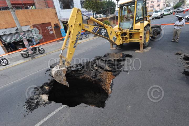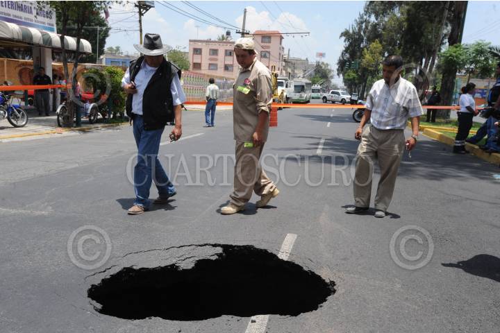 MÉXICO, D.F., 05AGOSTO2011.- Un socavón de aproximadamente 10 x 6 metros apareció como consecuencia de la ruptura de un tubo de agua potable de 32 pulgadas en las calles de Oriente 101 y Norte 72 de la colonia Bondojito de la delegación Gustavo A. Madero. FOTO: IVAN MENDEZ/CUARTOSCURO.COM