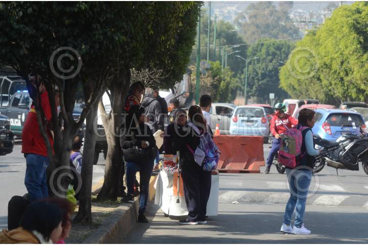 MÉXICO, D.F., 29ABRIL2010.- Elementos de la policía capitalina desalojaron a cien pequeños aproximadamente del jardín de niños Luz Maria Serradel ubicado en la esquina de avenida Andrés Molina Enríquez y Coruña en la colonia Viaducto Piedad por la fuga que se registro en la ruptura de un tubo en uno de los tanques estacionarios de gas. FOTO: LUIS CARBAYO/CUARTOSCURO.COM