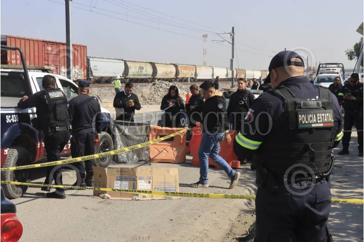 TULTEPEC, ESTADO DE MÉXICO, 11ENERO2025.- Fueron hallados restos humanos en bolsas negras de plástico sobre la avenida Recursos Hidráulicos, muy cerca de las vías del tren. Policías Estatales cercaron el sitio en espera de que peritos recogieran los brazos desmembrados, aunque no precisaron si eran de una o varias víctimas. FOTO: ROGELIO MORALES/CUARTOSCURO.COM