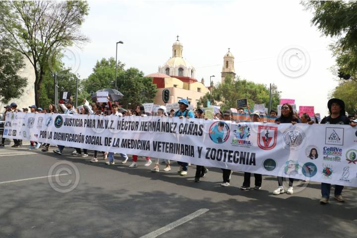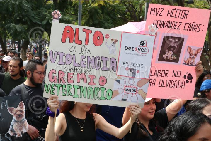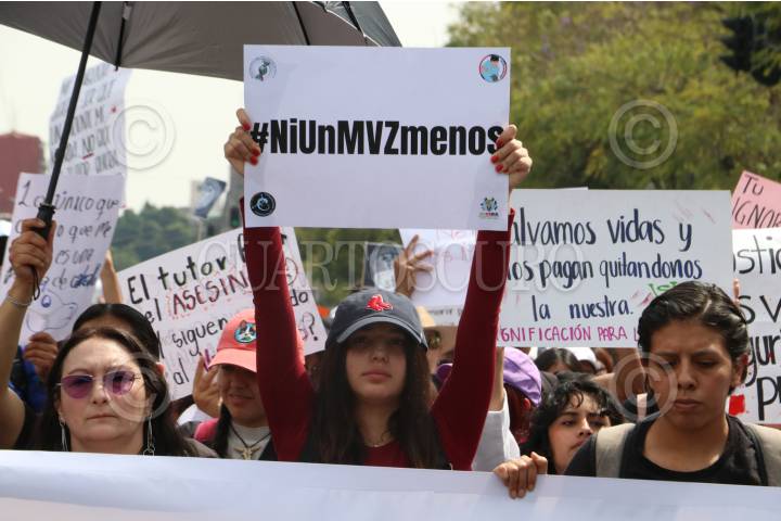 CIUDAD DE MÉXICO, 18FEBRERO2025.- Colectivo de estudiantes y profesionistas veterinarios se manifestaron debido al asesinato del zootecnista Héctor Hernández Cañas en Tultepec, Estado de México por los dueños de un perro Yorshire quien falleció debido a una obstrucción en el esófago tras ingerir un hueso. FOTO: GUSTAVO ALBERTO /CUARTOSCURO