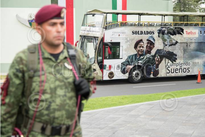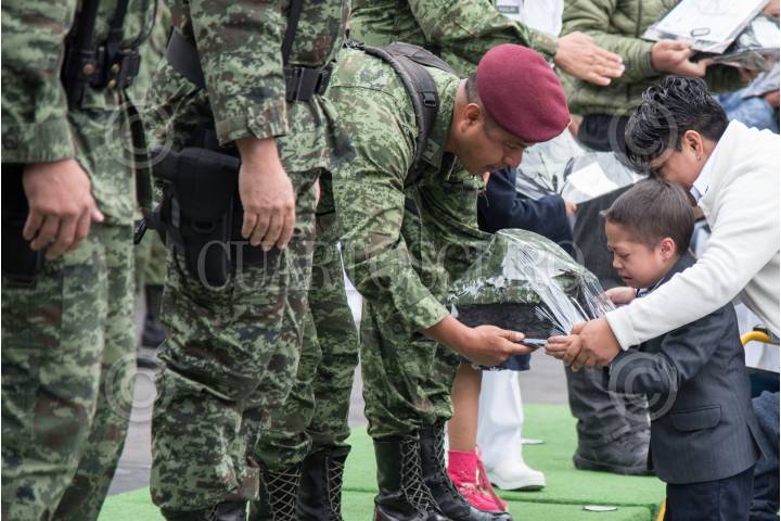 CIUDAD DE MÉXICO, 14SEPTIEMBRE2017.- Se realizó la ceremonia de entrega de uniformes a niños honorarios que participarán en la columna del desfile militar a bordo de un “Turibus”. Los niños recibieron los uniformes en las instalaciones de la Brigada de Fusileros Paracaidistas del Campo Militar 1-A. FOTO: MARIO JASSO /CUARTOSCURO.COM